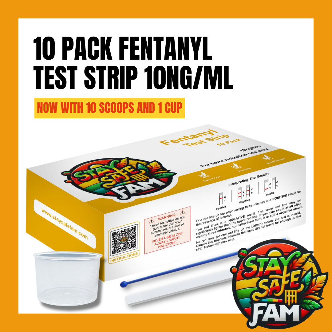 10 Pack Fent Test Strip 10ng/mL | NOW with 10 Scoops and 1 Cup